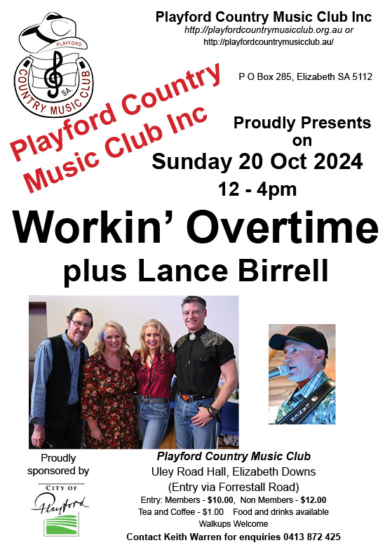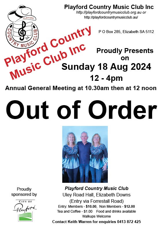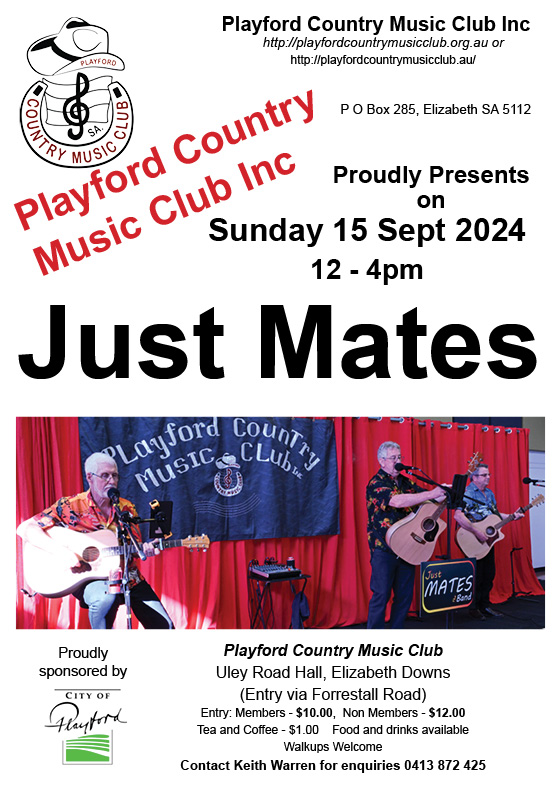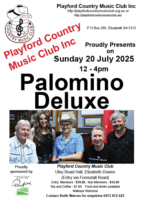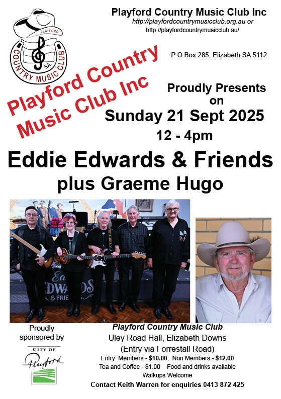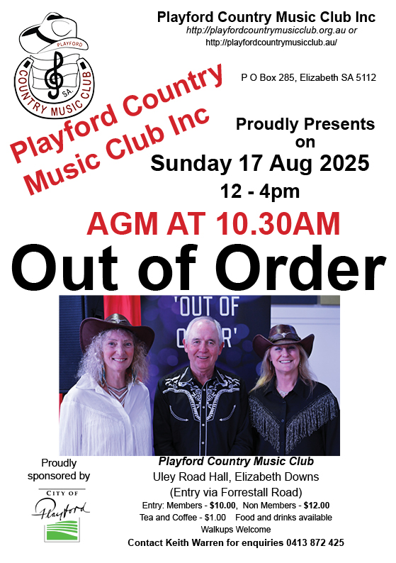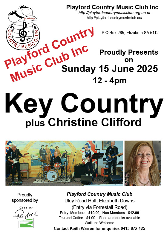 2025Diary Dates for the Playford Country Music Club note:- Open Mike on the Saturday before each Sunday Club Day |
