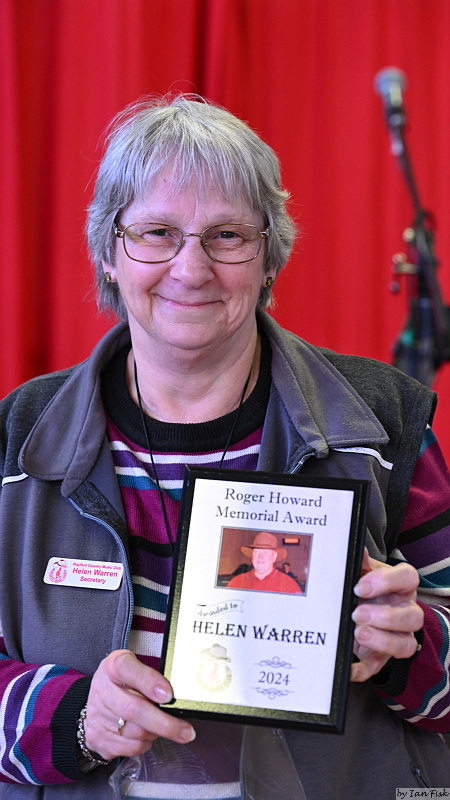 Words from President Keith Warren "In August 2019 we lost one of our favourite life Members Roger Howard. Roger was a devoted Country Music fan. He played at many of SA Country Music Clubs as a walk up and a guest artist. He was a strong participant of our workshop and also the Open Mic. He ran the open mic for quite a while. Roger was also a part of our Slim Dusty Tribute Show. In September 2020 the open Mic ran a special day in Rogers name, and had their biggest crowd ever. It was organized by Fred Payne and the Howard Family. Fred and I suggested that we have an annual award in Roger’s name. This is why we are here now. I asked the committee to nominate people they thought appropriate for the award. I then gave the nominations to Rogers family to pick the winner of our first award." Note:- Roger Howard was a general committee member of the Gawler Country Music Club in 1994 and September 2001. He was the treasurer in 1996 and 1997, and the Secretary in 1997 and 2000. He did his first walkup in 1999. (from the Club’s History page) In 2021 "This person was on our committee in a number of positions when we were the Gawler country Music Club, and has been a part of the open Mic and the workshop when the workshop was running, and I think a very worthy recipient of this award. The first Roger Howard goes to Pam Griffin. Well done Pam. The award was presented by Loraine Howard. Well Down Pam"